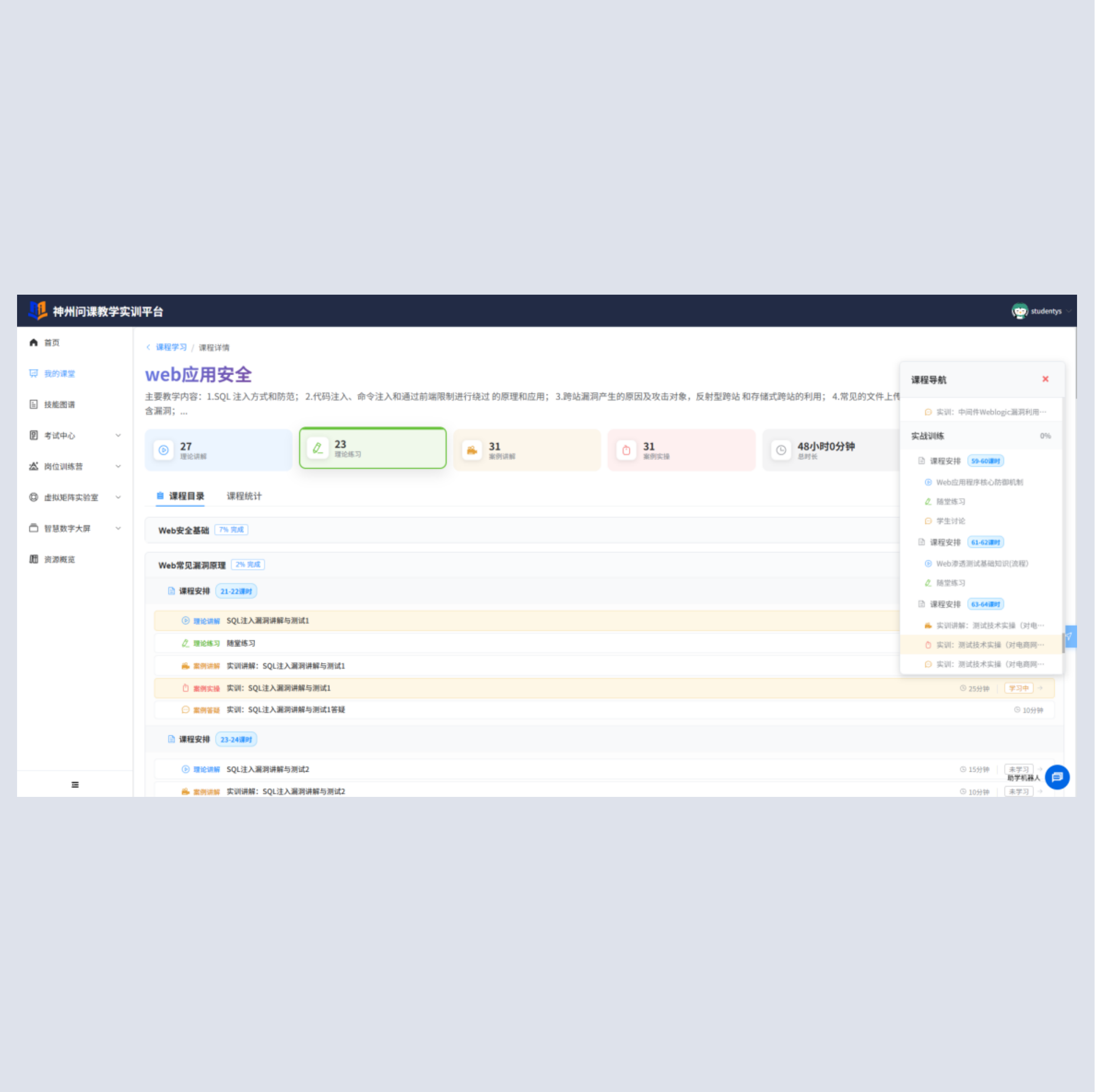 NO钱包官网问课教学系统定义三个角色,教师、学生,管理员。具备课程中心,岗位训练营,理实一体化考试,开放式资源库等功能模块。支持模块化装载课程资源。课程中心模块给予课堂管理,我的课堂,课程引领,我的课程功能;理实一体化考试模块给予我的考试,试卷管理,考试管理功能。岗位训练营给予岗位测评,岗位报告,报告统计功能;开放式资源库给予理论题库,镜像管理,镜像模板管理,实训环境管理功能。 |