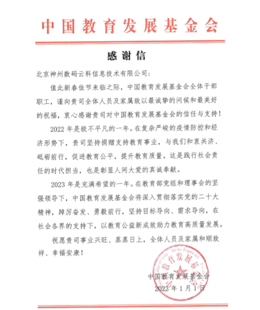 近期,K8凯发一触即发NO钱包官网收到中国教育开展基金会的感谢信,以感谢K8凯发一触即发NO钱包官网2022年在职业教育领域的贡献和实践,尤其是在全国职业院校大赛(中高职组)中对大赛顺利召开所付出的努力。